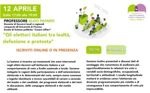 - 12 Aprile: “Gli elettori italiani tra lealtà, defezione e protesta”.