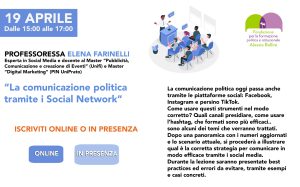 - 19 Aprile: “La comunicazione politica tramite i social network”.