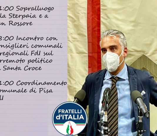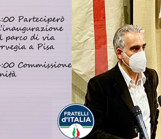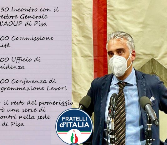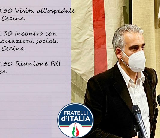 Cecina 26/04/2021 – Prosegue il tour del Consigliere regionale di Fratelli d’Italia, Diego Petrucci, negli ospedali di periferia. Stamani ha visitato il presidio sanitario di Cecina, insieme a Mirta Merli, responsabile FdI di Cecina, a...